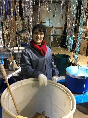 Another element to the process was helping with the cardboard set, which is a tradition at The Lost Post Office as the post office warehouse is full of undelivered parcels. I helped on different tasks such as labelling boxes with unusual reasons for non-delivery, for example “all the pigs ran off” and “I’ve got no milk in.” I also helped with assembling boxes, making post office signs, decorating the works canteen (B-Arts café) and various other production tasks. This really pulled the team together and built on the creativity making us all a part of the show. During helping out with production tasks, I managed to knock down a wall of boxes, destroying an important part of the cardboard maze, which was quite embarrassing. However, the team gave me a hand and we built it back up together in a stronger fashion, followed by the team jokily saying “were you just testing it out, Evie?”